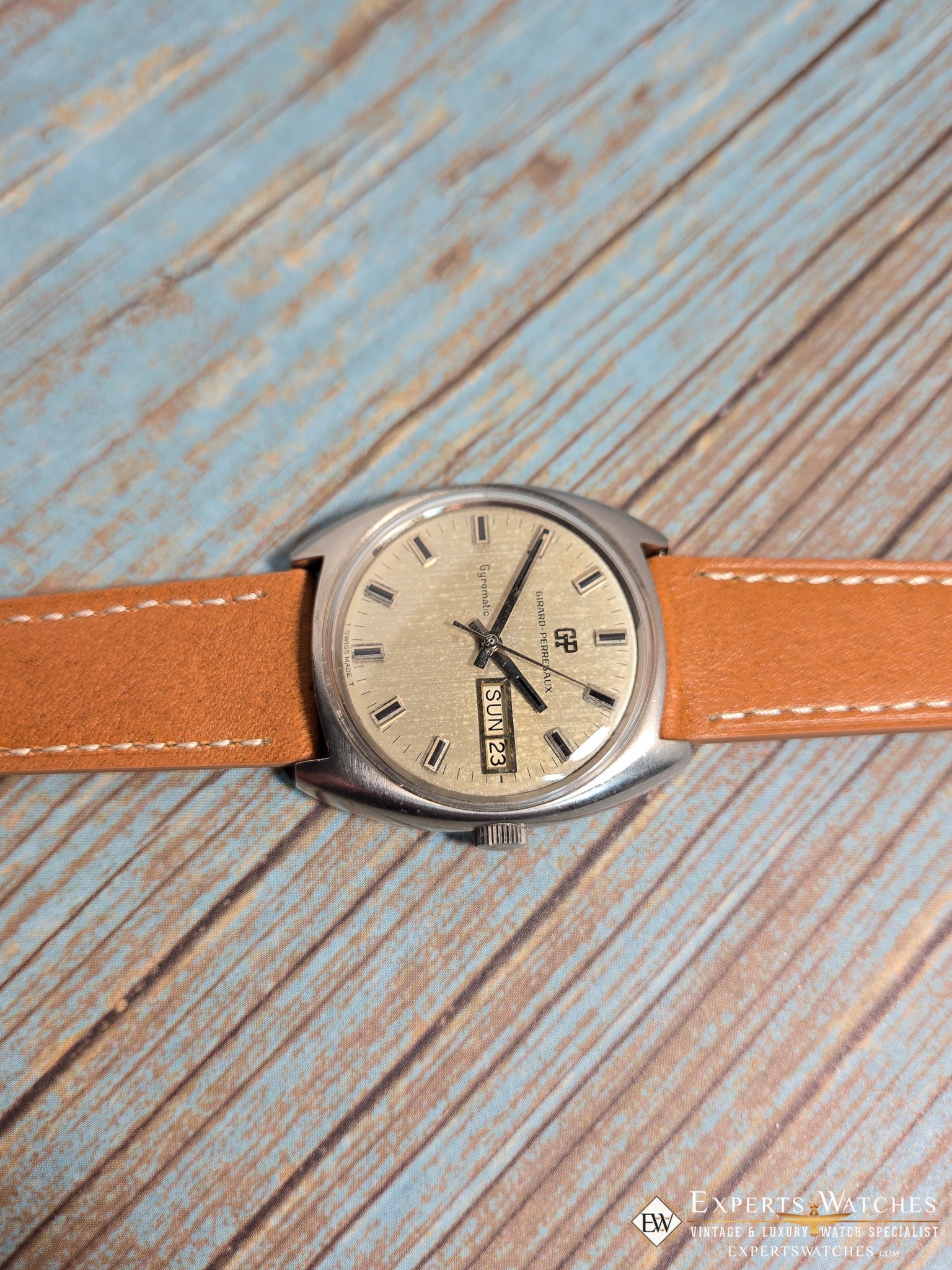 The Gyromatic line was introduced by Girard‑Perregaux in the mid‑1950s as a breakthrough in efficient, low‑friction automatic winding. By the 1960s, it had become one of GP’s most successful platforms, known for its slim profile, smooth winding system, and excellent reliability.